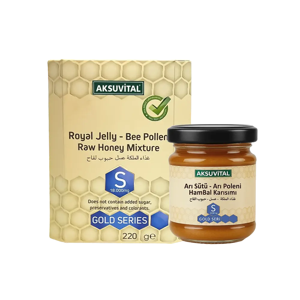 هو مكمل غذائي طبيعي يتكون من العسل الخام وغذاء الملكات ١٨ شهر وحبوب اللقاح.